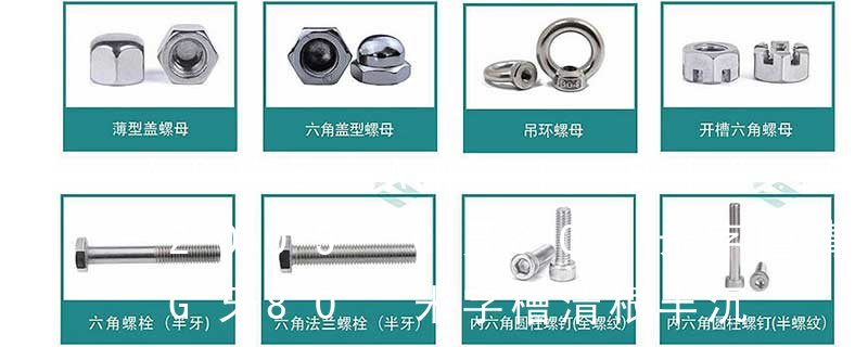 (鐵板牙自攻螺絲) B-2: Plastic Tapping Screw. (塑膠用,自攻螺絲) C: Wooden Screw : 木工螺絲 D: Drywall Screw :水泥墻螺絲 E: Self Drilling Screws鉆尾螺絲(不銹鋼鉆尾螺絲,復(fù)合材料鉆尾螺絲) F:膨脹螺絲,四片膨脹螺絲又 1.機螺釘 2.自攻螺釘 3.鉆尾螺釘 4.墻板釘 5.纖維板釘 6.木螺釘7.六角木螺釘 8.不脫出螺釘 9.組合螺釘 10.微型螺釘 11.家具螺釘 12.電子螺釘頭型:1.六角頭(hexagon head) 2.六角頭法蘭面(hexagon head with flange) 3.