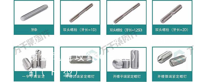 1、頭部形狀頭部形狀各式各樣。有圓頭(半圓頭)、扁圓頭、圓頭凸緣(帶墊)、扁圓頭凸緣(帶墊)、盤頭、盤頭凸緣(帶墊)、沉頭、半沉頭、圓柱頭、球面圓柱頭、喇叭頭、六角頭、六角法蘭頭、六角凸緣(帶墊)頭等。2 沉頭內六角螺釘(平杯)、半圓頭內六角螺釘(圓杯)、十字槽盤頭機螺釘、十字槽沉頭機螺釘、十字槽大扁頭機螺釘、十字槽盤頭自攻釘、十字槽沉頭自攻釘、十字槽大扁頭自攻釘、全牙絲桿(牙條)、六角螺母、法蘭